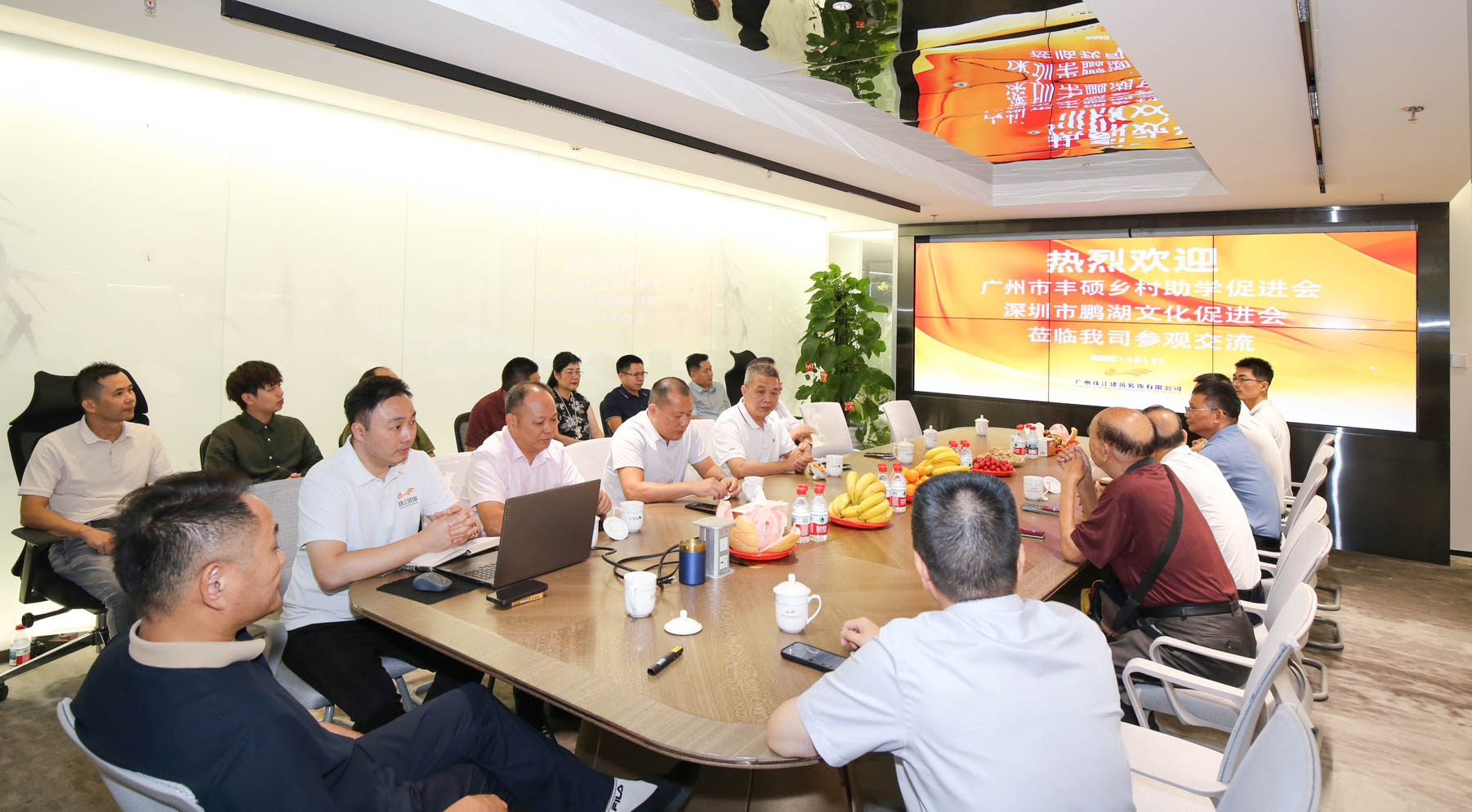 2025 年 10 月 11 日上午,广州珠江建筑装饰有限公司(下称“珠江装饰”)会议室宾朋满座、暖意融融。广州市丰硕乡村助学促进会、深圳市鹏湖文化促进会的主要领导及理事会成员一行莅临我司,共同研讨促进会下半年工作规划暨丰良鹏湖酒店项目的专题路演。